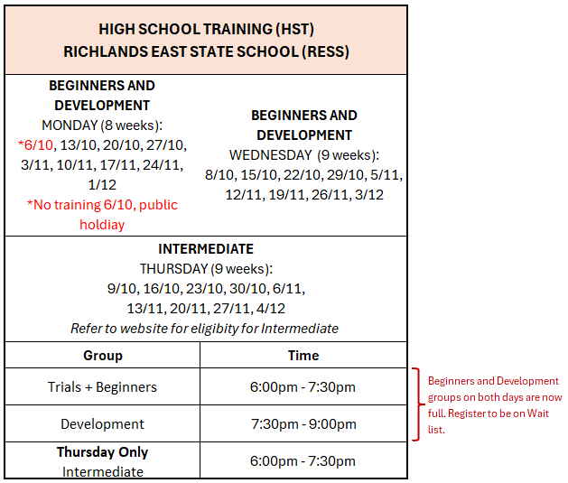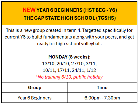 • We are introducing a customised HST Beginners class on Mondays targeting Year 6 players.
