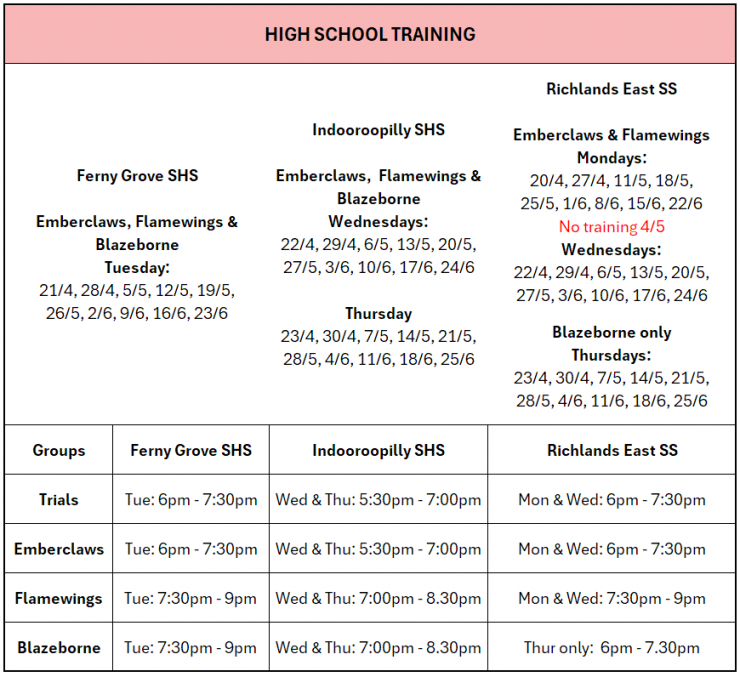 Register to trial for any of our Junior Training Programs to try it out before committing. If you are new to High School Trainingm, you may either trial or register into Emberclaws straight away!