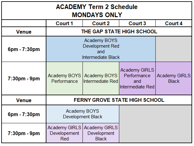 - Below is schedule for Term 2 2026. In term 2, training only on Mondays.