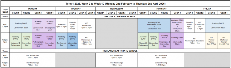 PVL Training Schedule: